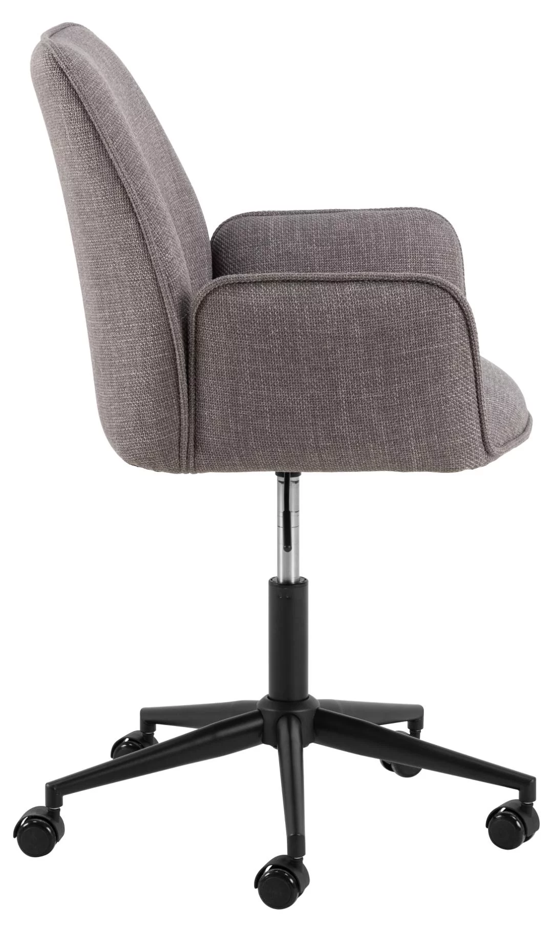 Wersja biurowa modelu VERMONT zachowuje charakterystyczne cechy serii – wysokie, komfortowe oparcie oraz eleganckie pionowe przeszycia, które nadają bryle luksusowego sznytu. Jasnobrązowa tapicerka, wykonana z miękkiej tkaniny lub ekoskóry, jest przyjemna w dotyku i zapewnia odpowiednią cyrkulację powietrza podczas pracy. Fotel osadzony jest na stabilnej, pięcioramiennej podstawie z kółkami, co gwarantuje pełną mobilność. Wyposażenie w mechanizm regulacji wysokości oraz funkcję obrotową pozwala na precyzyjne dopasowanie krzesła do biurka i sylwetki użytkownika, łącząc estetykę salonowego mebla z funkcjonalnością niezbędną do efektywnej pracy.