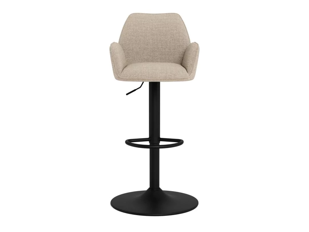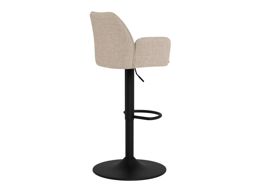 Hoker VERMONT w wersji obrotowej to zaawansowany model, który łączy luksusowy wygląd serii VERMONT z maksymalną swobodą ruchów. Beżowa tapicerka nadaje mu niezwykłej lekkości i świeżości, sprawiając, że hoker staje się biżuteryjnym dopełnieniem nowoczesnej wyspy kuchennej. Jasny, piaskowy odcień materiału doskonale rozświetla przestrzeń, tworząc harmonijną całość z wnętrzami w stylu glamour, nowoczesnym oraz klasycznym.
