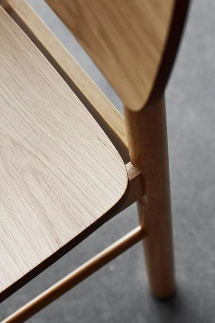 Model KAMI z oparciem wyróżnia się spójną, geometryczną konstrukcją, w której każdy element pełni określoną funkcję. Subtelnie wyprofilowane oparcie zapewnia stabilne podparcie dla kręgosłupa, nie obciążając przy tym bryły mebla – hoker zachowuje swoją charakterystyczną dla serii KAMI lekkość wizualną. Drewniane nogi, połączone praktycznymi poprzeczkami służącymi jako podnóżek, gwarantują stabilność i bezpieczeństwo. Naturalne wybarwienie drewna z widocznym usłojeniem sprawia, że hoker idealnie wpisuje się w klimat eko, japandi oraz nowoczesne aranżacje, w których stawia się na materiały najwyższej jakości i ponadczasowy design.
