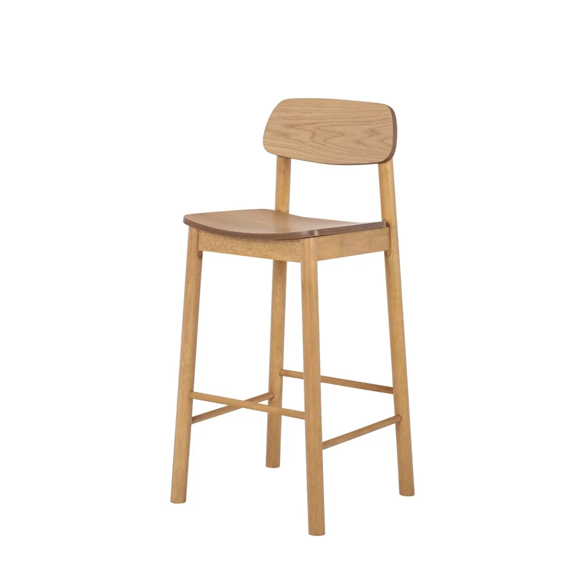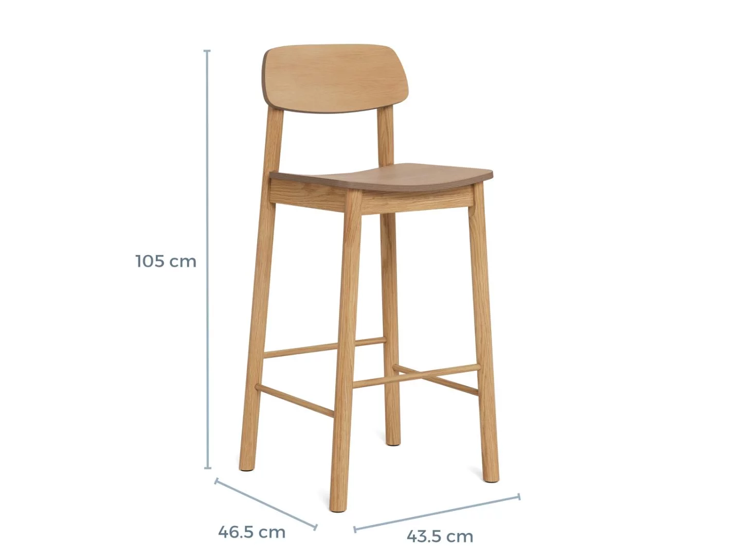 Hoker z serii KAMI wyposażony w oparcie to doskonałe połączenie minimalistycznej estetyki z podwyższonym komfortem użytkowania. Wykonanie z naturalnego drewna nadaje mu szlachetnego wyglądu i sprawia, że mebel staje się solidnym punktem każdej domowej strefy barowej. Dzięki obecności oparcia, hoker ten przestaje być tylko wysokim taboretem, a staje się pełnoprawnym krzesłem, które zachęca do dłuższego celebrowania posiłków przy kuchennej wyspie czy wysokim blacie.