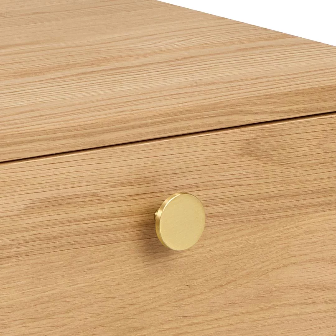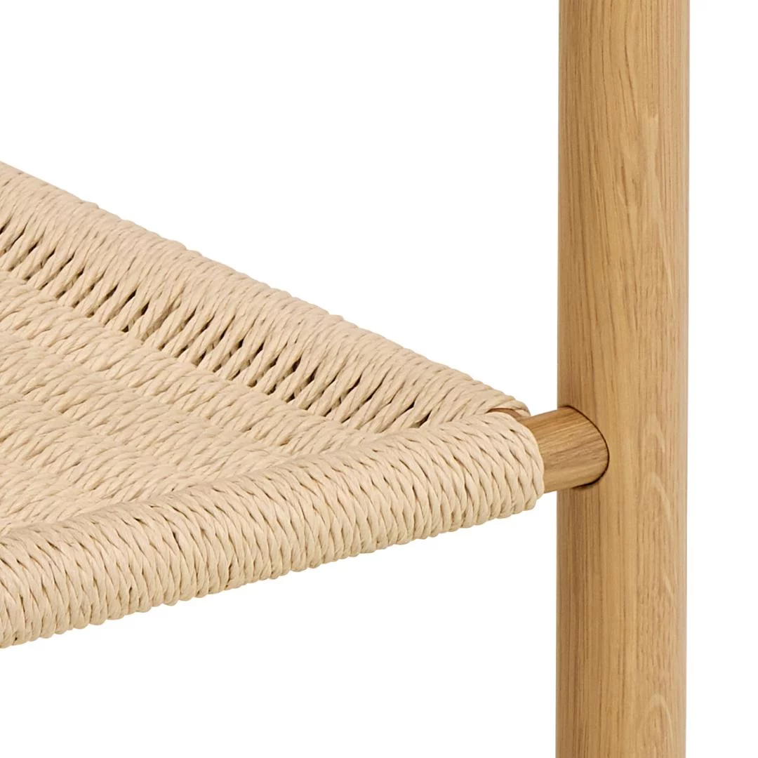 Stolik nocny AMARI w wersji z otwartą półką to propozycja dla miłośników minimalistycznego designu i ekspozycyjnej formy przechowywania. Rezygnacja z pełnych frontów na rzecz otwartej przestrzeni nadaje meblowi wyjątkowej lekkości wizualnej, co sprawia, że sypialnia wydaje się bardziej przestronna. Wykonanie z drewna o ciepłym wybarwieniu i wyraźnym rysunku słojów wprowadza do wnętrza organiczny spokój i harmonię, tak pożądaną w strefie odpoczynku.