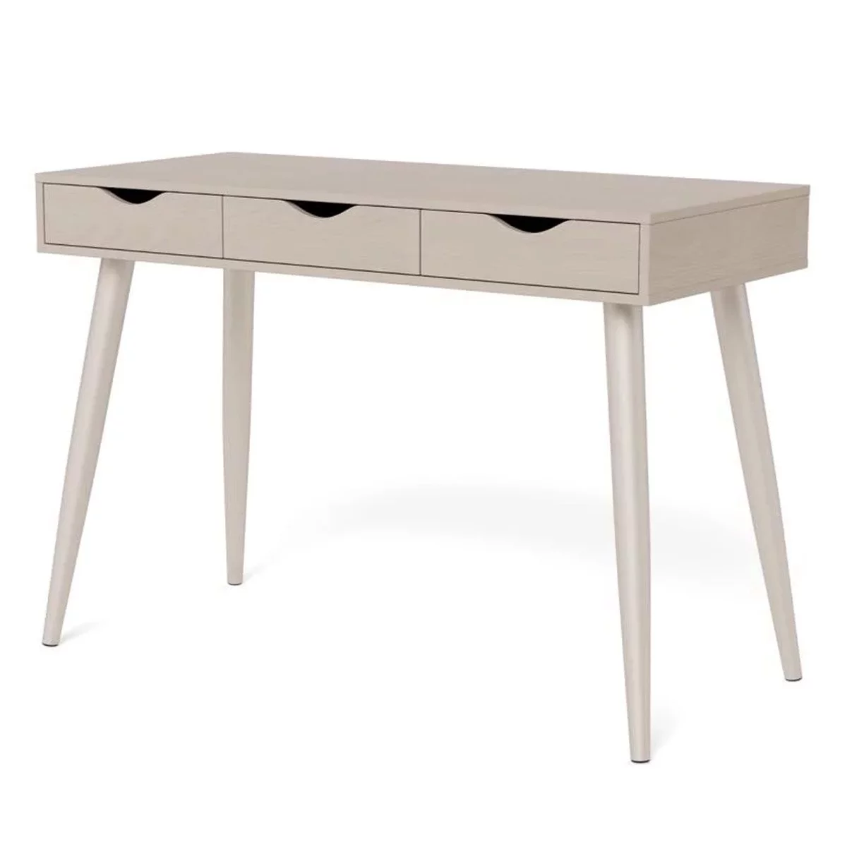 Model NIKOS łączy w sobie lekką formę z solidnością wykonania. Blat o szerokości 110 cm oferuje wystarczającą przestrzeń na laptopa, akcesoria biurowe i lampkę, podczas gdy głębokość 50 cm pozwala zachować ergonomię pracy nawet w wąskich przestrzeniach. Beżowe wykończenie, często o matowej strukturze, cechuje się dużą odpornością na codzienne użytkowanie i jest łatwe w pielęgnacji. Całość zazwyczaj wspiera się na smukłych, metalowych lub drewnianych nogach, które nadają biurku nowoczesnego charakteru i wizualnej lekkości. To idealny wybór dla osób poszukujących mebla, który łączy elegancję z praktycznym podejściem do home office.