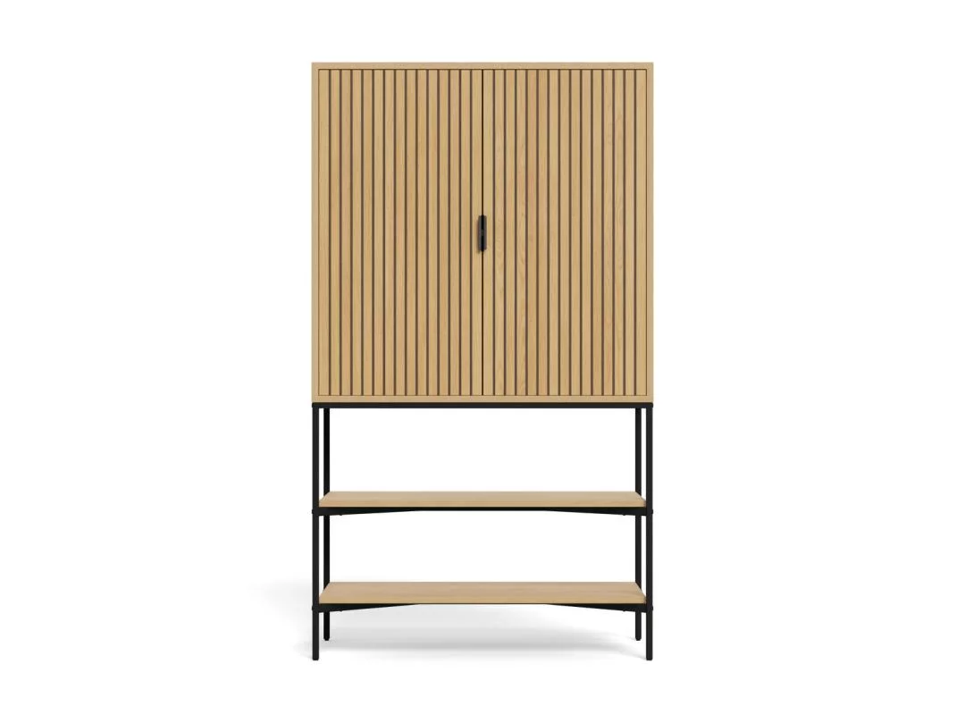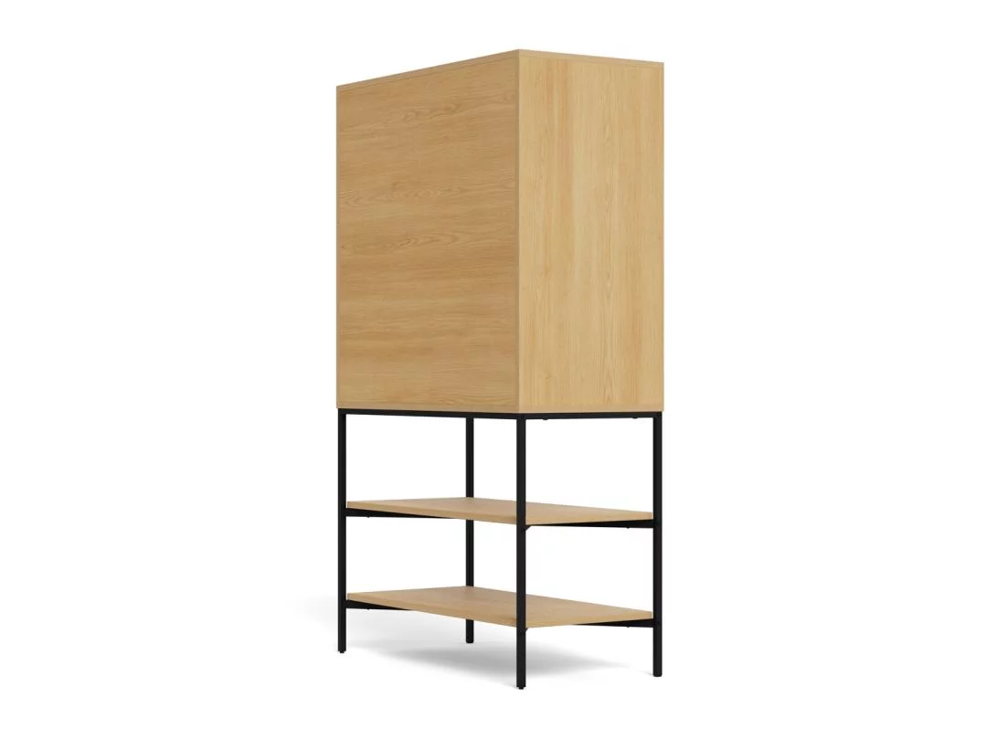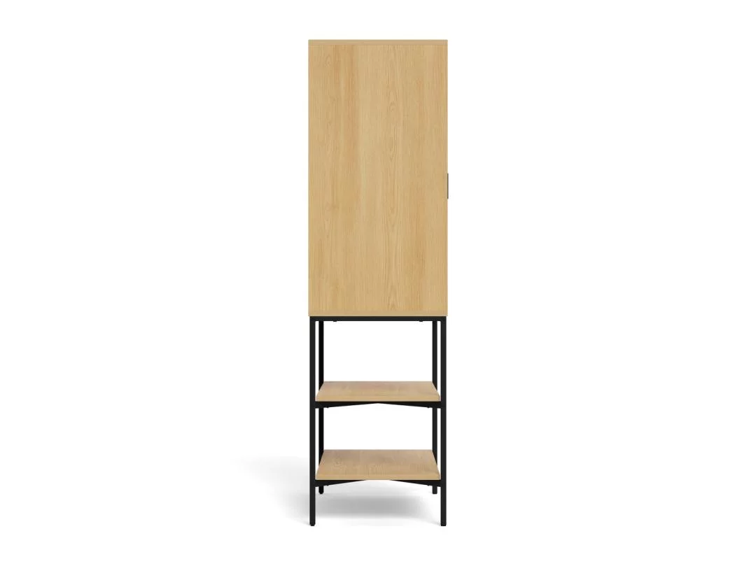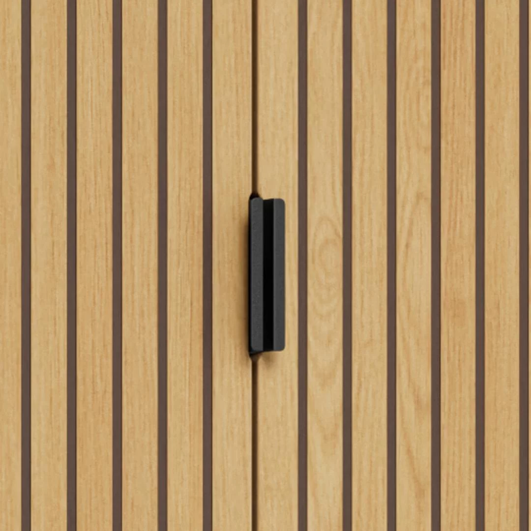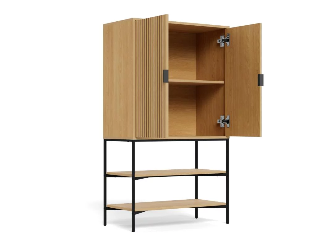 Model RIVENA wyróżnia się dbałością o detale, które są znakiem rozpoznawczym całej serii. Przeszklone fronty pozwalają na wyeksponowanie szkła, ceramiki lub kolekcji książek, chroniąc je jednocześnie przed kurzem. Jasna kolorystyka drewna doskonale współgra z nowoczesnymi elementami wykończenia, takimi jak metalowe uchwyty czy smukłe nóżki, które nadają całości nowoczesnego, loftowego sznytu. Solidna konstrukcja i precyzyjne wykończenie krawędzi sprawiają, że gablota RIVENA jest nie tylko estetycznym, ale i trwałym elementem wyposażenia, który przez lata będzie cieszył oko swoją nienaganną formą.