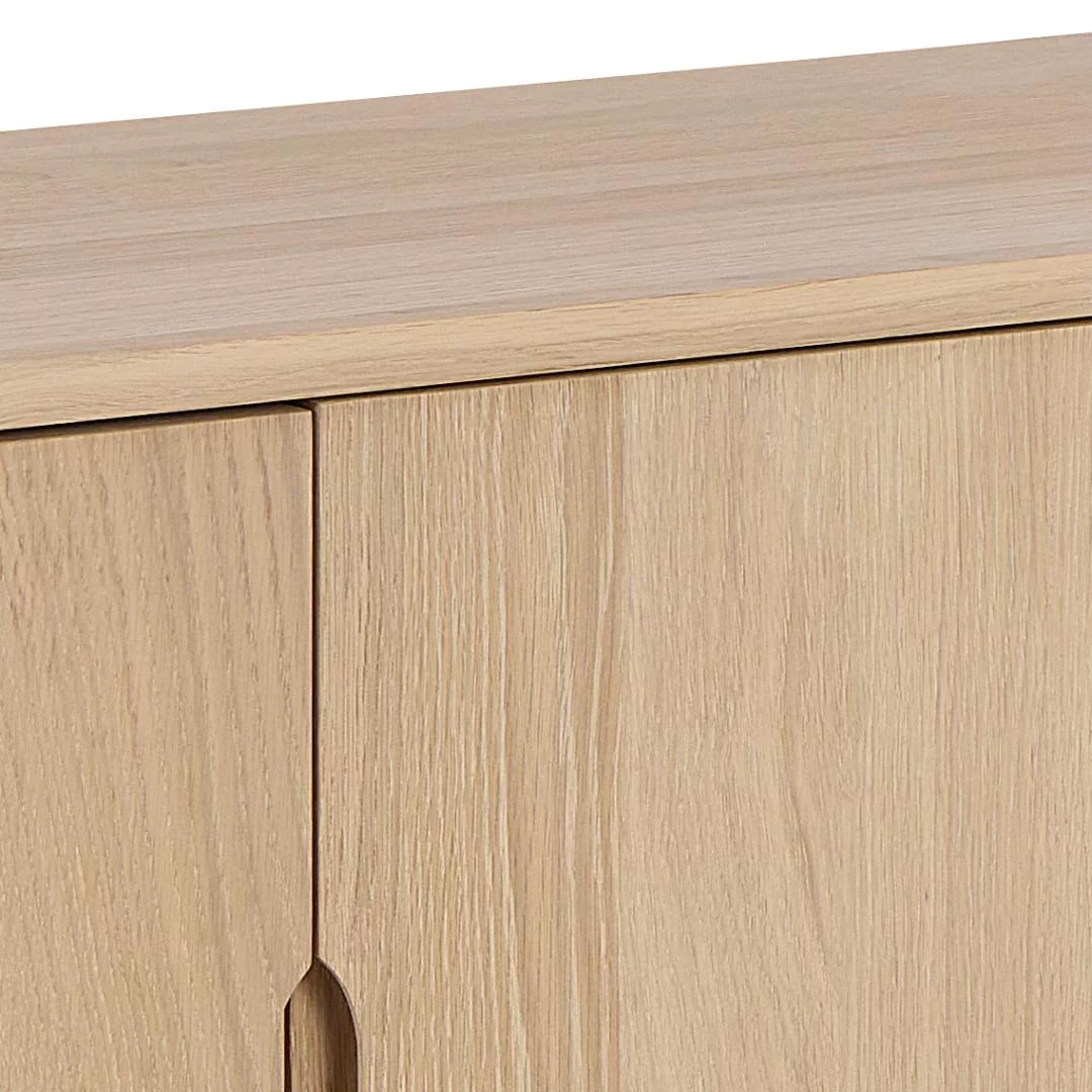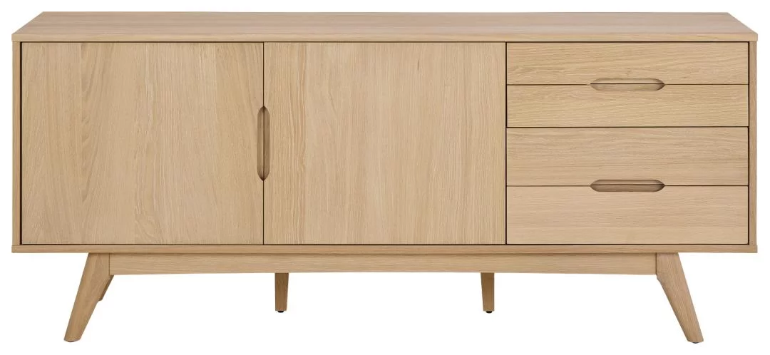 Dzięki długości 180 cm i optymalnej głębokości 40 cm, model Noemi oferuje ogromną powierzchnię blatu, która jest doskonałym miejscem na ustawienie telewizora, dużych lamp stołowych, roślin czy kolekcji pamiątek. Wnętrze komody zostało zaprojektowane tak, aby maksymalnie ułatwić segregację przedmiotów – od zastawy stołowej, przez tekstylia, aż po dokumenty. Solidna konstrukcja i dbałość o detale, takie jak rysunek usłojenia drewna, podkreślają wysoką jakość mebla. Noemi to synonim funkcjonalności ujętej w ramę ponadczasowego stylu, który przetrwa zmieniające się trendy.