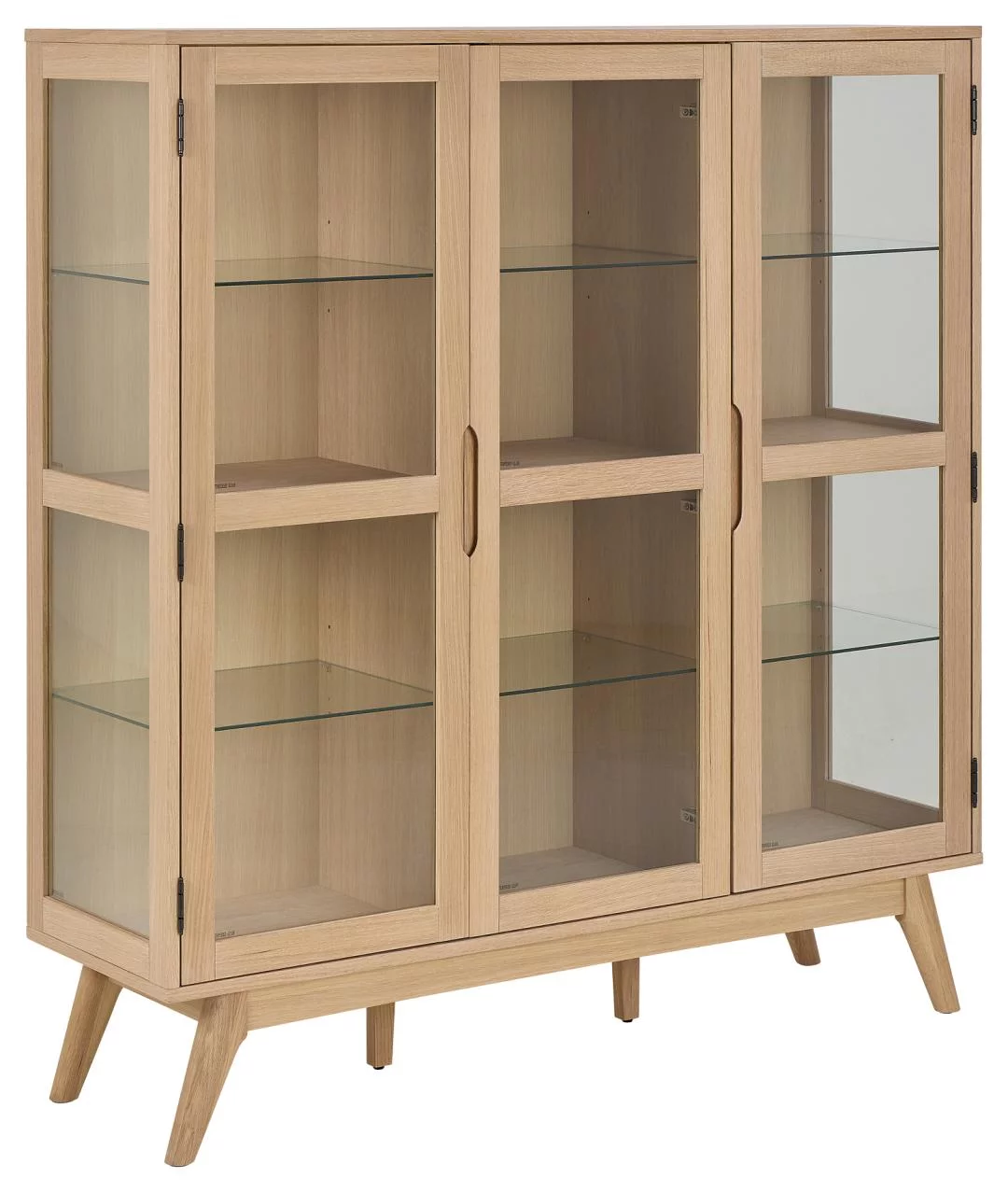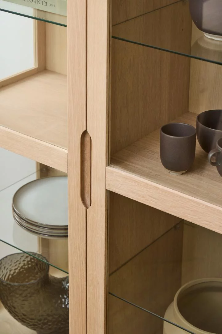 Model NOEMI o głębokości 40 cm oferuje dużą pojemność przy zachowaniu smukłej sylwetki, która nie dominuje nadmiernie przestrzeni. Trzydrzwiowy układ pozwala na wygodną segregację przechowywanych przedmiotów, chroniąc je jednocześnie przed kurzem dzięki szklanym taflom. Naturalny rysunek drewna, widoczny na obudowie i półkach, ociepla wizualnie pomieszczenie, a solidne wykonanie gwarantuje, że mebel będzie służył przez pokolenia. To witryna, która w elegancki sposób porządkuje wnętrze, nadając mu wyrafinowany i uporządkowany charakter.