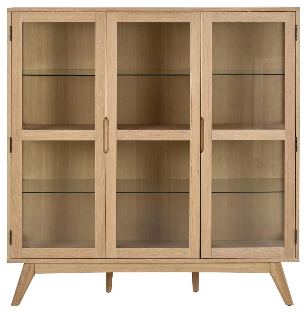 Witryna trzydrzwiowa NOEMI 140x40 drewniana – szlachetna ekspozycja w naturalnej oprawie
