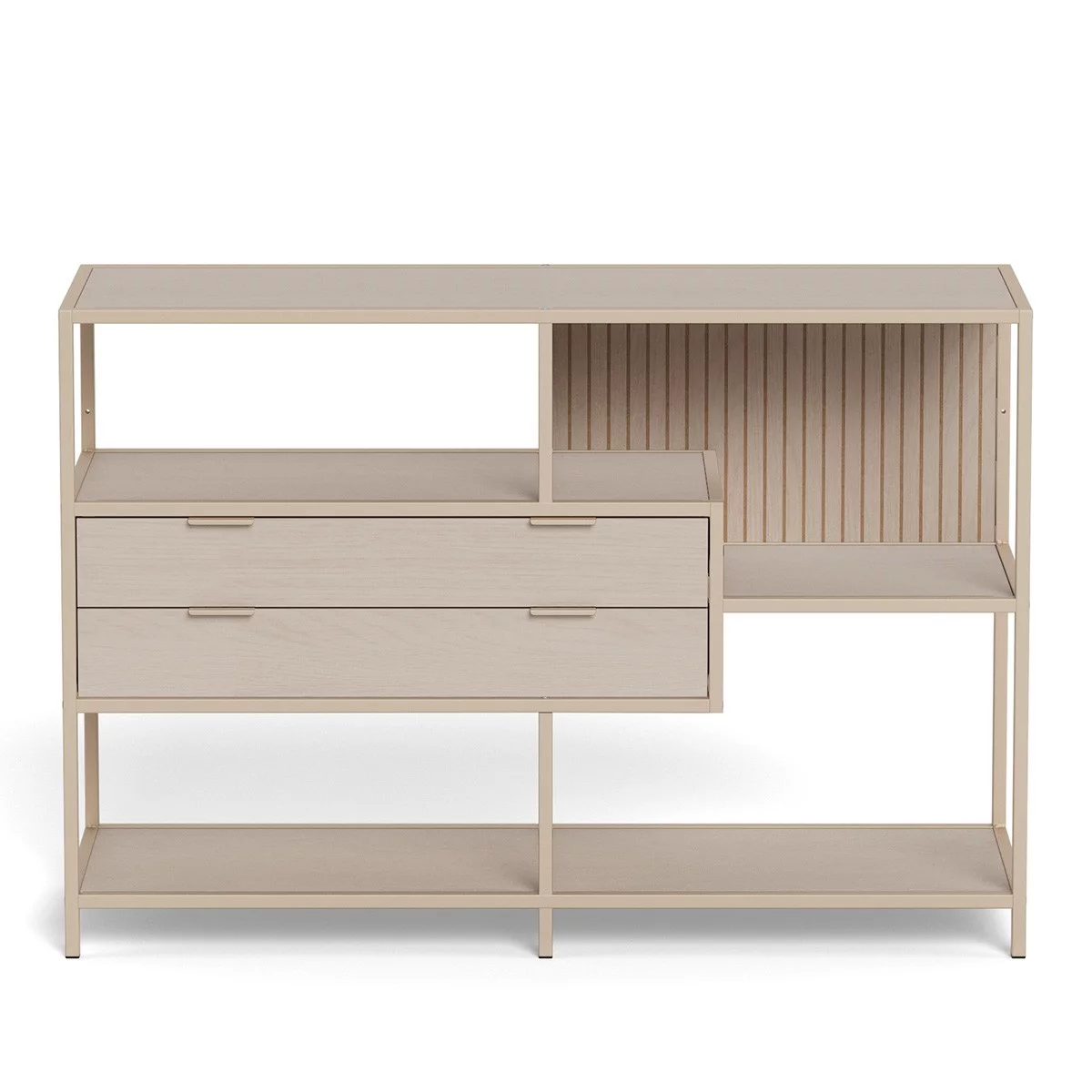 Regał z szufladami ZAKARIA 114x35 beżowy – subtelny design i funkcjonalna lekkość