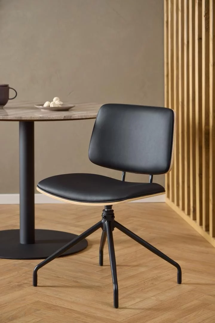 Krzesło obrotowe z ekoskóry GARDA czarne/drewniane