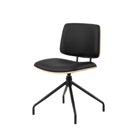 Krzesło obrotowe GARDA to wyjątkowe połączenie luksusowego designu z funkcjonalnością niezbędną do pracy przy biurku. Konstrukcja oparta na giętym drewnie w ciepłym odcieniu, zestawiona z głęboką czernią ekoskóry, przywodzi na myśl klasyczne projekty gabinetowe w stylu mid-century modern. To idealny wybór do domowego biura lub stylowego gabinetu, gdzie mebel ma nie tylko służyć wygodzie, ale również stanowić prestiżowy element dekoracyjny.