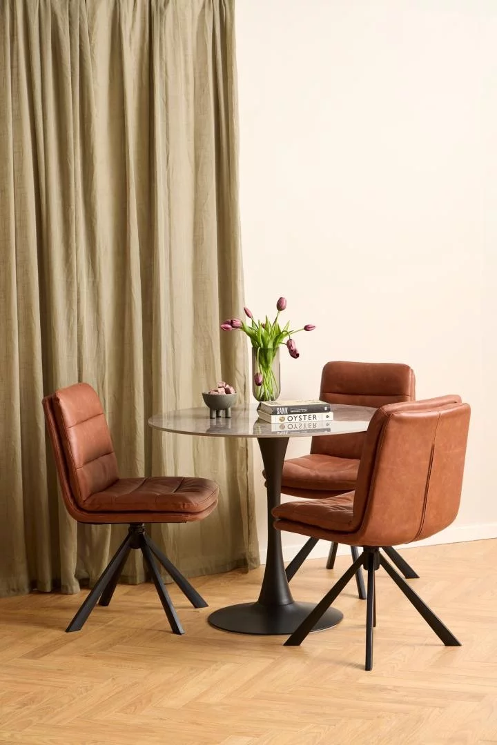Krzesło BRUNO w odcieniu głębokiego brązu to propozycja, która łączy prestiżowy wygląd z wyjątkową praktycznością. Tapicerka z wysokiej jakości ekoskóry nadaje mu szlachetnego charakteru, przypominającego tradycyjne meble gabinetowe, jednak osadzonego w nowoczesnej, lekkiej formie. Brązowa kolorystyka wprowadza do jadalni lub biura poczucie stabilności i ciepła, tworząc idealną harmonię z drewnianymi stołami oraz dodatkami w stylu vintage, industrialnym czy klasycznym.