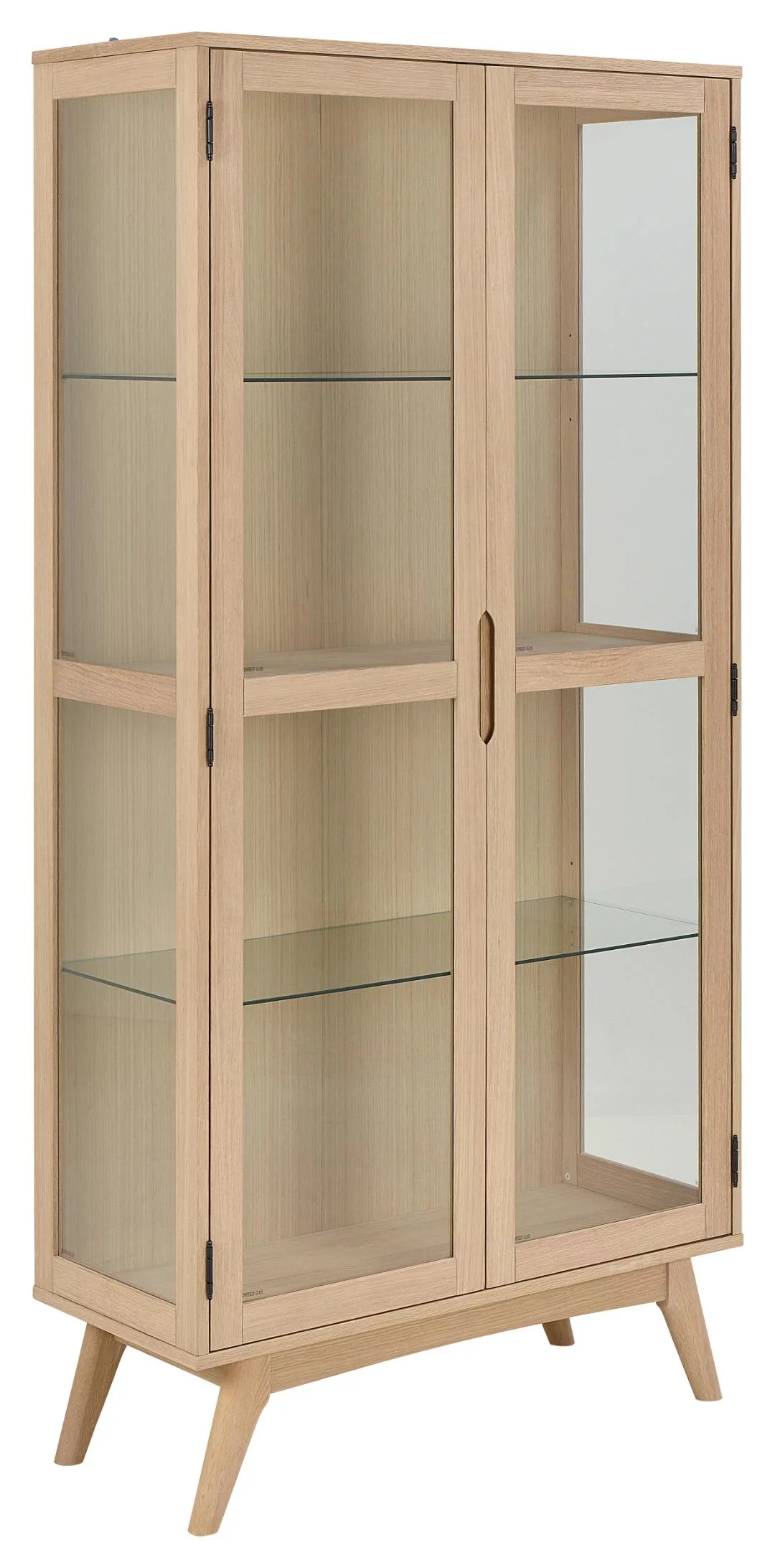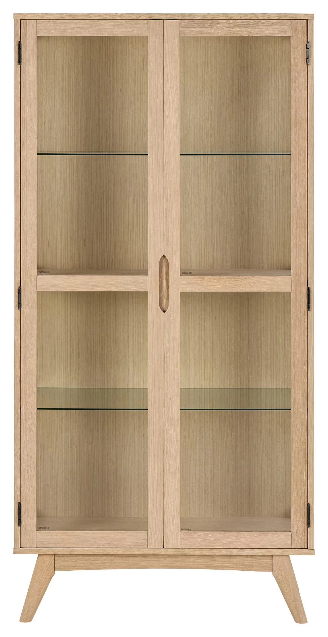 Dzięki głębokości 40 cm, witryna NOEMI jest ustawna i nie zajmuje nadmiernie dużo miejsca, oferując przy tym przestronne wnętrze z półkami gotowymi na ekspozycję ceramiki, szkła czy domowej biblioteczki. Naturalna struktura drewna z widocznym usłojeniem sprawia, że mebel prezentuje się niezwykle prestiżowo i staje się ozdobą samą w sobie. Solidne wykonanie oraz stabilna podstawa gwarantują bezpieczeństwo użytkowania, a ponadczasowy design sprawia, że witryna NOEMI będzie służyć domownikom przez dekady, pięknie starzejąc się wraz z upływem czasu.