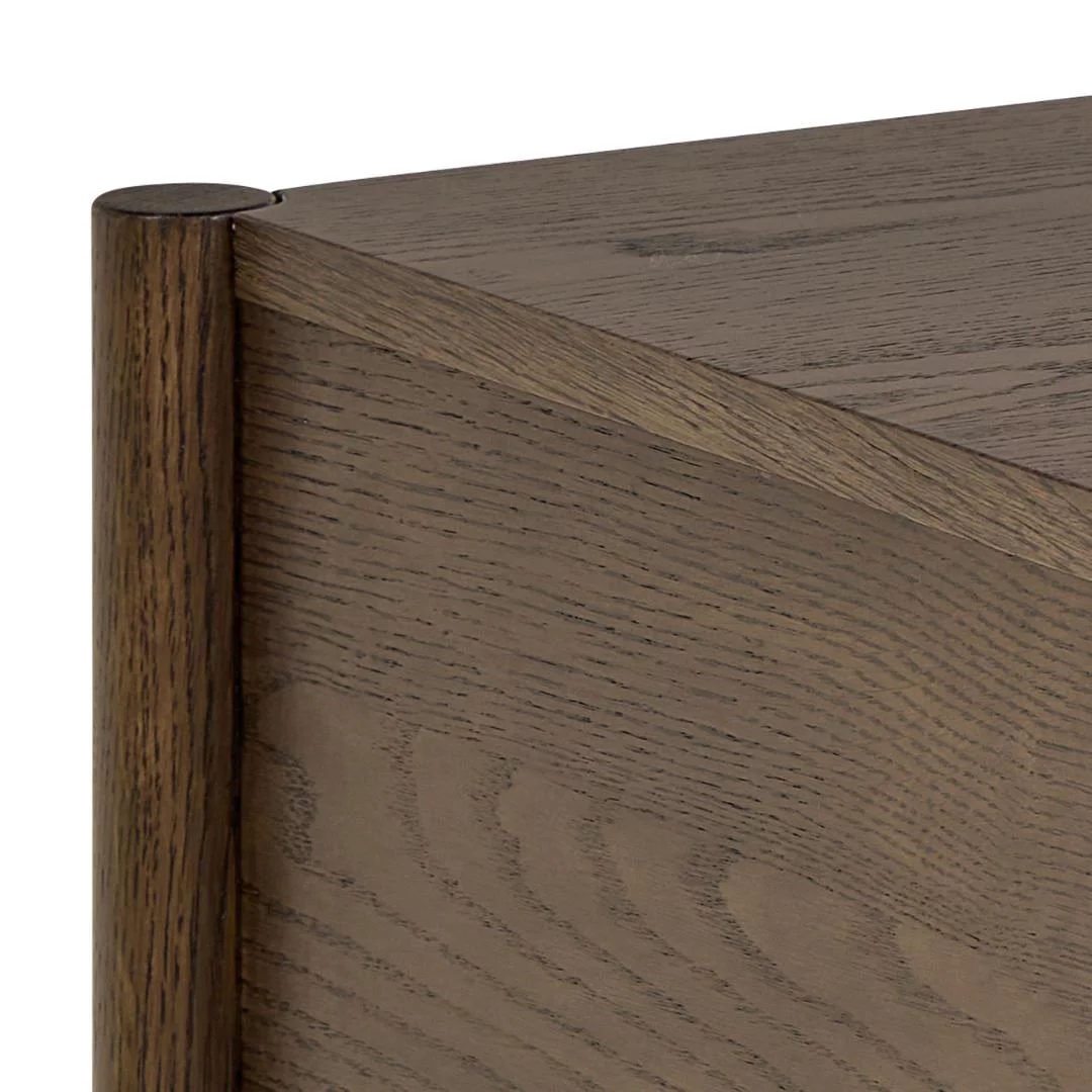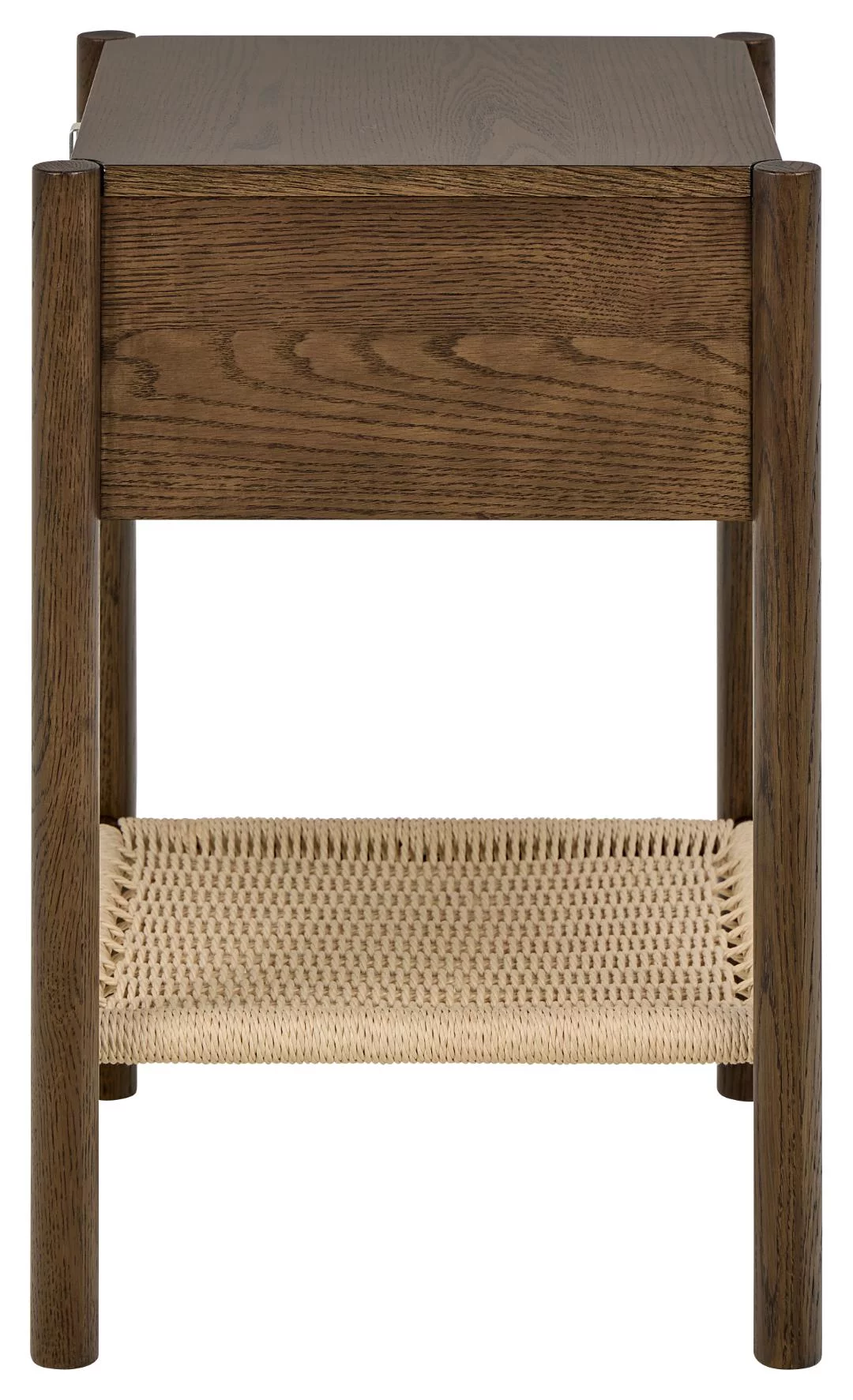 Stolik nocny AMARI w odcieniu dębu dymionego to idealne połączenie funkcjonalności z wyrazistym, nowoczesnym designem. Ciemne, głębokie wykończenie imitujące dąb dymiony nadaje wnętrzu elegancji i wprowadza przytulną, loftową atmosferę. Dodatkowa półka pod blatem to niezwykle praktyczne rozwiązanie, które pozwala zachować porządek na górnej powierzchni, oferując jednocześnie łatwo dostępne miejsce na ulubione książki, czytnik e-booków czy inne wieczorne drobiazgi.