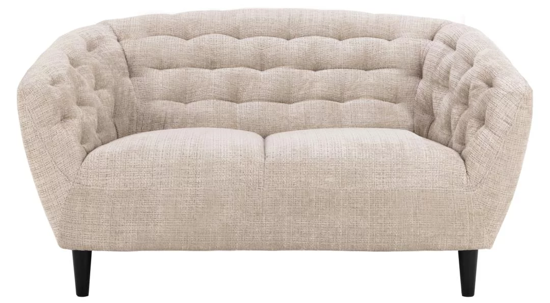 Sofa pikowana dwuosobowa SORA beżowa – subtelny wdzięk w stylu glamour