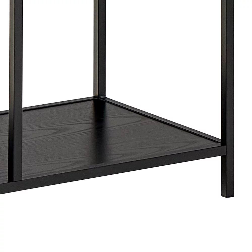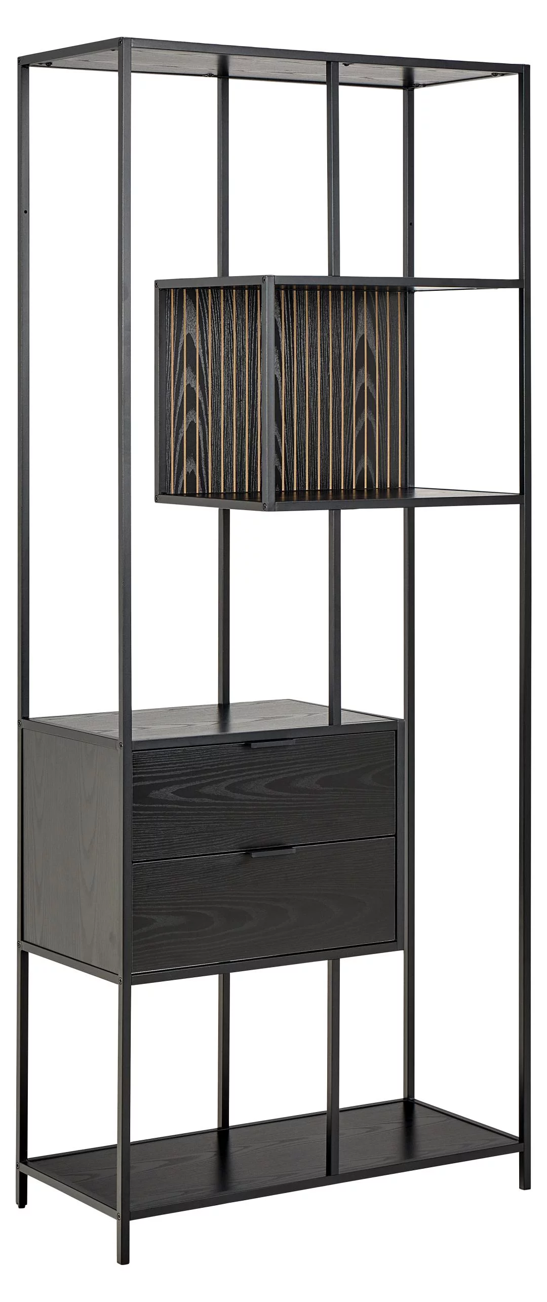 Regał ZAKARIA o wysokości 77 cm w wersji z szufladami to unikalne połączenie otwartej, loftowej konstrukcji z praktyczną funkcjonalnością. Czarna, metalowa rama nadaje mu nowoczesnego, industrialnego charakteru, podczas gdy dodatek szuflad pozwala na ukrycie drobnych przedmiotów, które nie muszą znajdować się na widoku. To idealny mebel dla osób, które cenią porządek i minimalistyczny design, szukając stylowego rozwiązania do przedpokoju, sypialni czy biura.