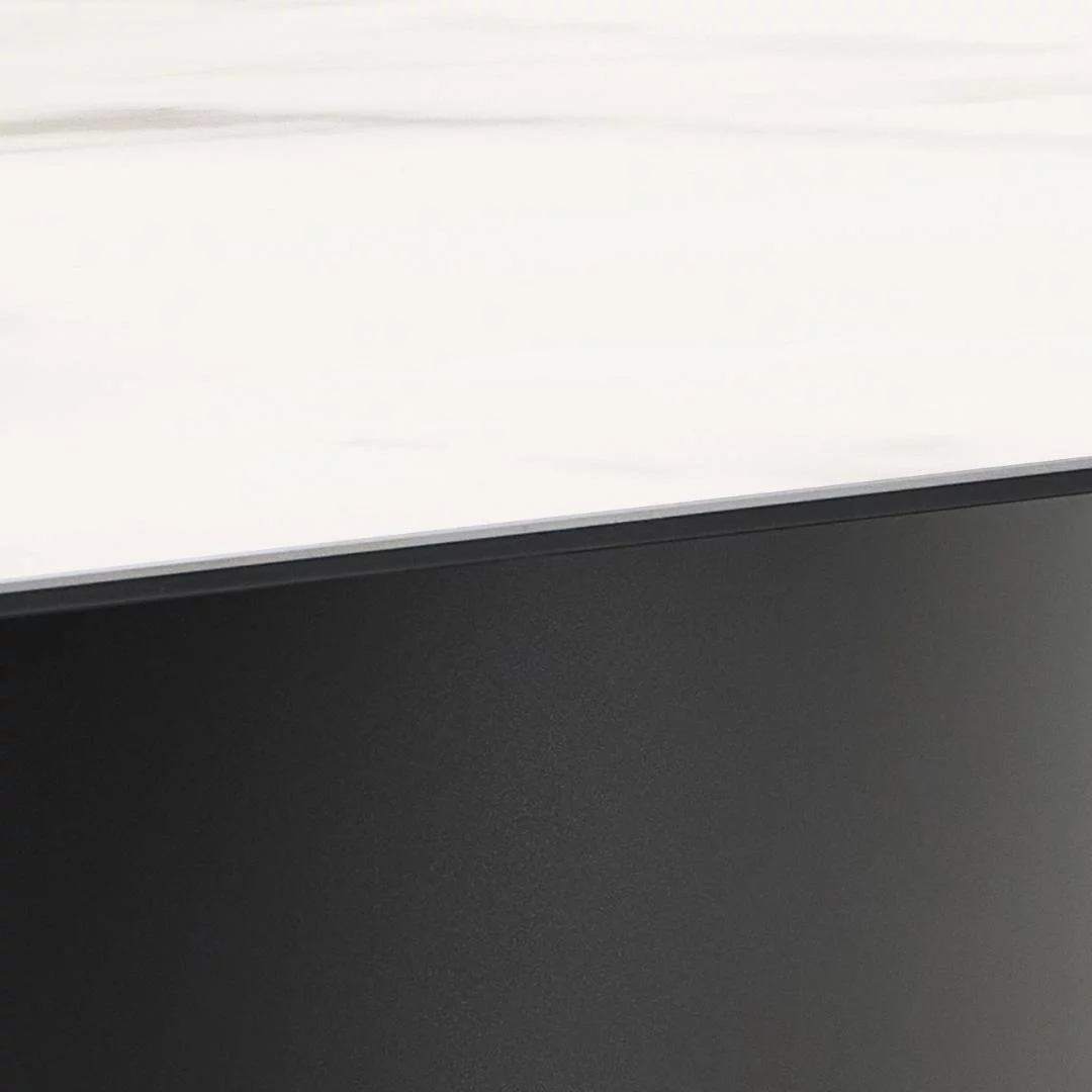 Wymiary 200x100 cm pozwalają na komfortowe ugoszczenie 8, a nawet 10 osób, co czyni go idealnym wyborem na uroczyste kolacje i rodzinne spotkania. Wykończenie blatu imitujące szlachetny kamień łączy w sobie widowiskowy wygląd z praktycznością – powierzchnia jest łatwa do utrzymania w czystości i odporna na codzienne użytkowanie. Solidna podstawa zapewnia stabilność tak dużego blatu, tworząc bezpieczną i stylową przestrzeń do wspólnego spędzania czasu.