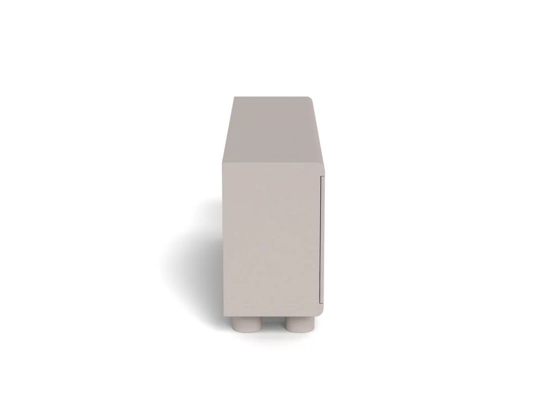 Komoda KALT o długości 160 cm to stylowe rozwiązanie dla osób ceniących nowoczesny design i porządek. Wykonana z płyty MDF lakierowanej na matowy szary kolor, wyróżnia się gładką, szlachetną powierzchnią i surową elegancją. Jej oszczędna forma idealnie wpisuje się w estetykę loftową oraz minimalistyczne wnętrza salonów, jadalni czy gabinetów.