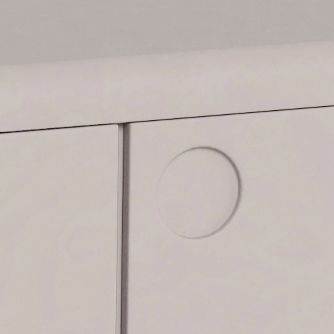 Mebel wyposażono w trzy szafki z wewnętrznymi półkami, co pozwala na wygodne segregowanie tekstyliów, zastawy stołowej lub dokumentów. Wysokość 75 cm sprawia, że blat komody stanowi doskonałą przestrzeń do wyeksponowania dekoracji, oświetlenia czy roślin. Solidna konstrukcja i precyzyjne wykończenie lakierem zapewniają wysoką odporność na zarysowania oraz trwałość, czyniąc komodę KALT funkcjonalnym fundamentem nowoczesnego domu.