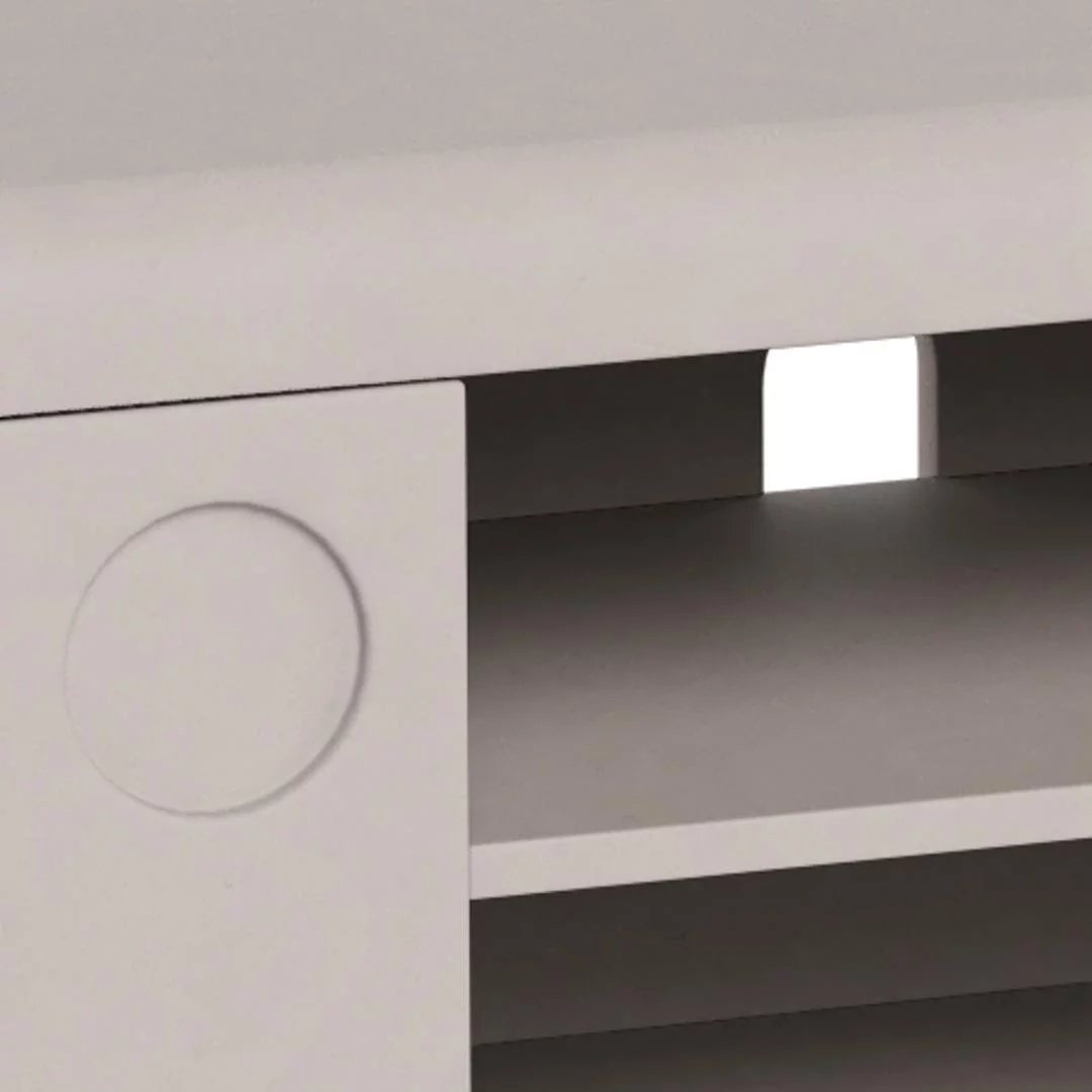 Mebel oferuje przemyślany układ przechowywania: dwie zamykane szafki po bokach oraz trzy otwarte półki w części centralnej, idealne na dekoder, konsolę czy kolekcję płyt. Solidna podstawa zapewnia pełną stabilność, a wymiary 160x40x50 cm sprawiają, że szafka pomieści nawet duży telewizor, zachowując przy tym lekkość formy. Wysoka jakość wykończenia powierzchni PU gwarantuje odporność na codzienne użytkowanie i łatwość w pielęgnacji.