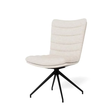 Model ELIO łączy w sobie minimalistyczną formę z wysokim komfortem użytkowania. Odpowiednio wyprofilowane oparcie oraz miękkie siedzisko pozwalają na relaks podczas długich posiłków, a smukłe nogi dodają konstrukcji wizualnej lekkości. Wysokiej jakości tkanina w odcieniu ecru jest starannie wykończona, co w połączeniu ze stabilną podstawą tworzy mebel trwały, elegancki i ponadczasowy.