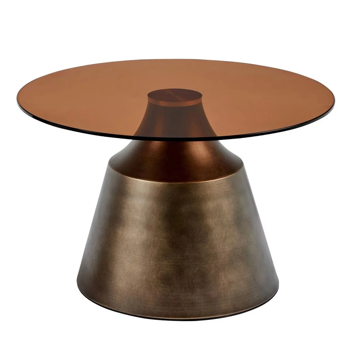 Stolik SIGO o średnicy 70 cm to większa odsłona luksusowego designu, która stanie się centralnym punktem każdego salonu. Połączenie blatu z ciemnego, brązowego szkła hartowanego ze szczotkowaną stalą w kolorze brązu tworzy wyjątkowo prestiżową kompozycję. Jego transparentna, a zarazem głęboka kolorystyka dodaje wnętrzu klasy, nie przytłaczając go wizualnie.