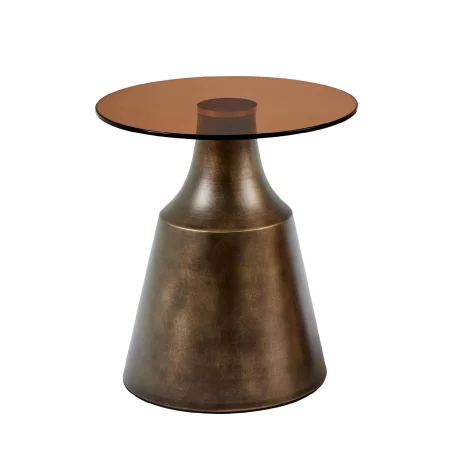 Stolik SIGO to wyrafinowane połączenie blatu z brązowego, hartowanego szkła oraz designerskiej podstawy ze szczotkowanej stali w kolorze brązu. Dzięki kompaktowej średnicy 45 cm i szlachetnemu wykończeniu, mebel ten stanowi biżuteryjny dodatek do wnętrza, nadając mu prestiżowego charakteru w stylu modern classic lub art deco.