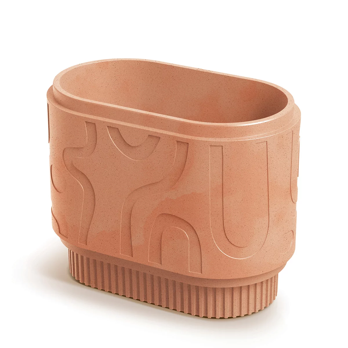 Donica TFOC60 Folka Round Case to model o wyjątkowej, podłużnej sylwetce, będący kompaktową wersją profesjonalnych pojemników z serii Case. Dzięki długości 60 cm i charakterystycznym, zaoblonym bokom, donica ta łączy funkcjonalność klasycznej skrzyni z subtelnością i elegancją okrągłych wykończeń. Jej unikalna forma doskonale odnajduje się w przestrzeniach, gdzie standardowe, prostokątne rozwiązania wydają się zbyt surowe. Jest to idealny wybór do tworzenia liniowych kompozycji z niskich traw ozdobnych, ziół czy roślin sezonowych na balkonach, szerokich parapetach zewnętrznych oraz w strefach wejściowych nowoczesnych budynków, gdzie pożądany jest nowoczesny, ale przyjazny dla oka design.