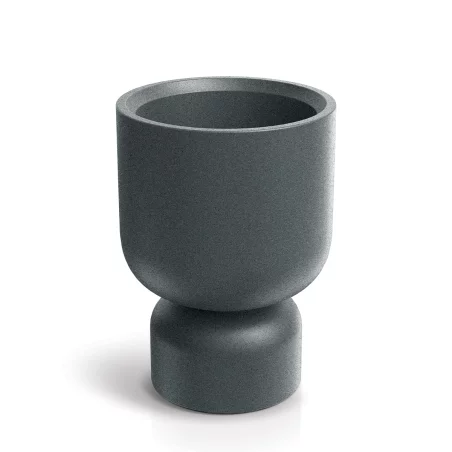 Donica TMG40M Molta Grail Midl to model o wyjątkowym designie, który czerpie inspirację z antycznej formy kielicha (Grail), reinterpretując ją w sposób nowoczesny i minimalistyczny. Wariant „Midl” charakteryzuje się średnią wysokością i płynną, zwężającą się ku dołowi linią, co nadaje bryle rzeźbiarskiej lekkości i elegancji. Dzięki średnicy 40 cm, donica ta stanowi idealną oprawę dla roślin o rozłożystym pokroju, krzewów ozdobnych oraz kompozycji kwiatowych, które wymagają odpowiedniego wyniesienia. Jest to doskonały wybór do aranżacji reprezentacyjnych – od stylowych tarasów i stref wejściowych, po nowoczesne wnętrza hotelowe i biurowe, gdzie liczy się unikalny detal architektoniczny.
