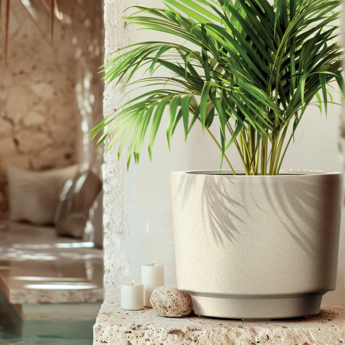 Donica TSRO30 Splito Round to najmniejszy przedstawiciel linii Splito, który udowadnia, że nawet niewielki element dekoracyjny może odmienić charakter wnętrza lub tarasu. Model ten wyróżnia się charakterystyczną, fakturowaną powierzchnią, która nadaje mu nowoczesnego, niemal rzeźbiarskiego wyglądu. Średnica 30 cm sprawia, że jest to donica niezwykle ustawna i uniwersalna – idealnie nadaje się na parapety, biurka, stoliki kawowe czy mniejsze regały balkonowe. Okrągły kształt w połączeniu z intrygującą strukturą ścianek sprawia, że TSRO30 stanowi doskonałą oprawę dla roślin doniczkowych, takich jak sukulenty, zioła czy kwitnące kwiaty sezonowe.