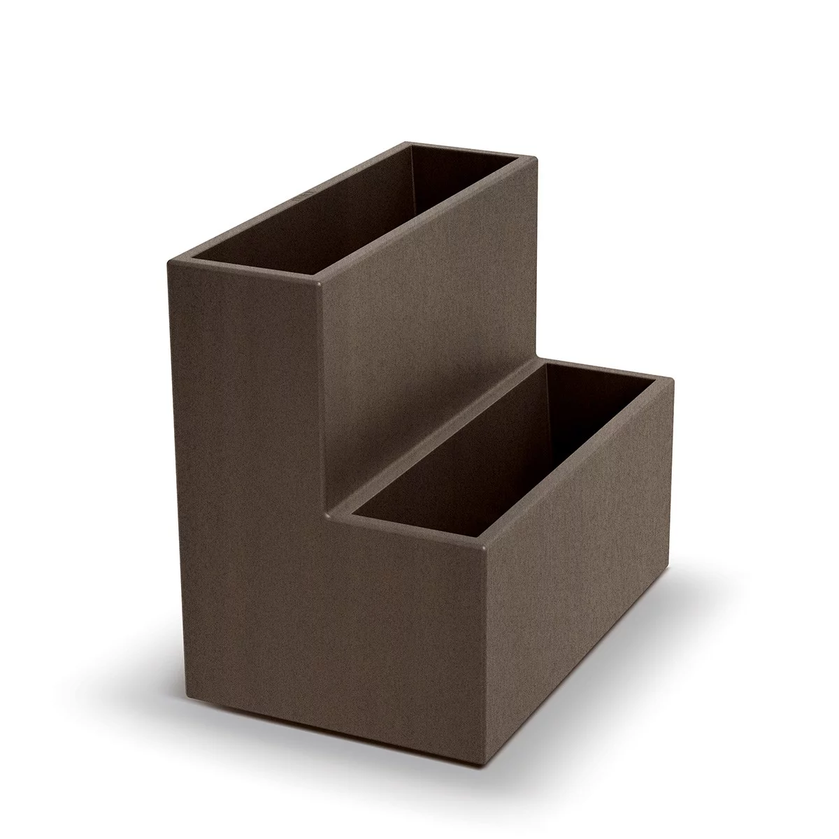 Donica TCLD60 Cubla Dua to model o unikalnej, dwustopniowej konstrukcji, która stanowi jedno z najbardziej dynamicznych rozwiązań w linii Cubla. Dzięki szerokości 60 cm i charakterystycznemu, uskokowemu profilowi „Dua”, donica ta wprowadza do otoczenia efekt trójwymiarowości i nowoczesnej rzeźbiarskości. Jej geometryczna forma pozwala na tworzenie kaskadowych kompozycji roślinnych, gdzie zieleń rozmieszczona na dwóch poziomach tworzy naturalną, a zarazem uporządkowaną strukturę. Jest to idealny wybór do aranżacji nowoczesnych tarasów, ogrodów dachowych oraz przestronnych lobby biurowych, gdzie liczy się niebanalny design i możliwość efektownego wydzielenia stref przy użyciu roślinności o różnej wysokości w jednej, spójnej bryle.