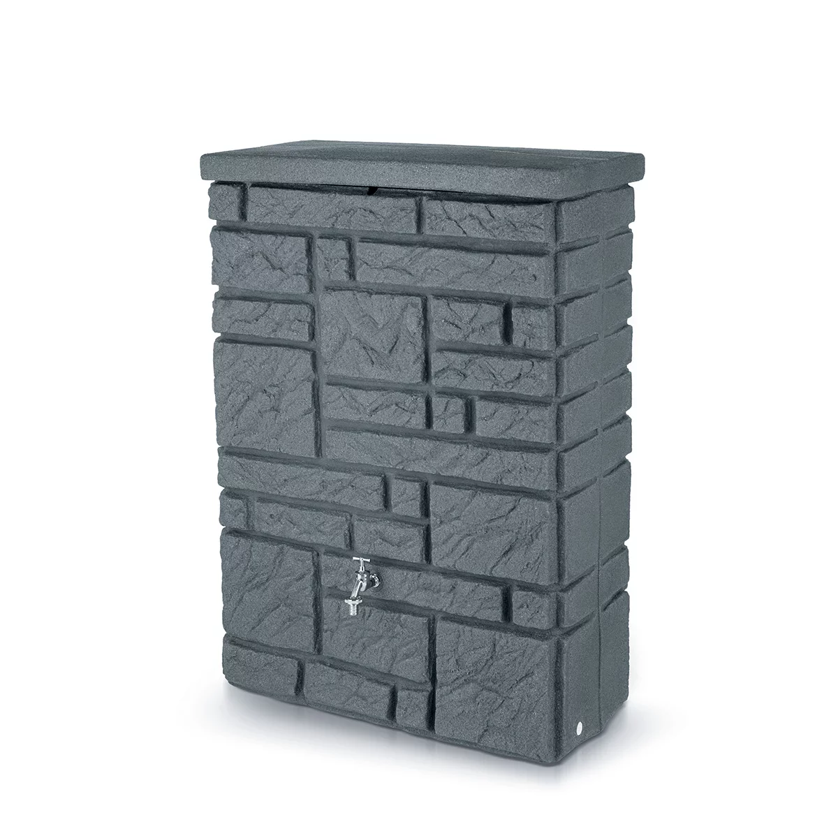 Zbiornik na deszczówkę RMU300 Maurano to unikalne rozwiązanie retencyjne, które wyróżnia się niezwykle realistycznym odwzorowaniem struktury muru z naturalnego kamienia. Dzięki pojemności 300 litrów, model ten stanowi idealną propozycję dla właścicieli posesji szukających magazynu wody, który wtopi się w architekturę ogrodu, tarasu lub bezpośrednio przylegnie do elewacji wykończonej kamieniem lub klinkierem. Jego prostokątna, zwarta bryła o wyraźnej teksturze ciosanych bloków sprawia, że zbiornik staje się niemal niewidocznym, a zarazem stylowym elementem małej architektury, eliminując surowy wygląd tradycyjnych instalacji wodnych. Jest to doskonały wybór dla osób, które cenią harmonię wizualną i pragną połączyć proekologiczne gromadzenie deszczówki z dbałością o rustykalny lub klasyczny charakter otoczenia domu.