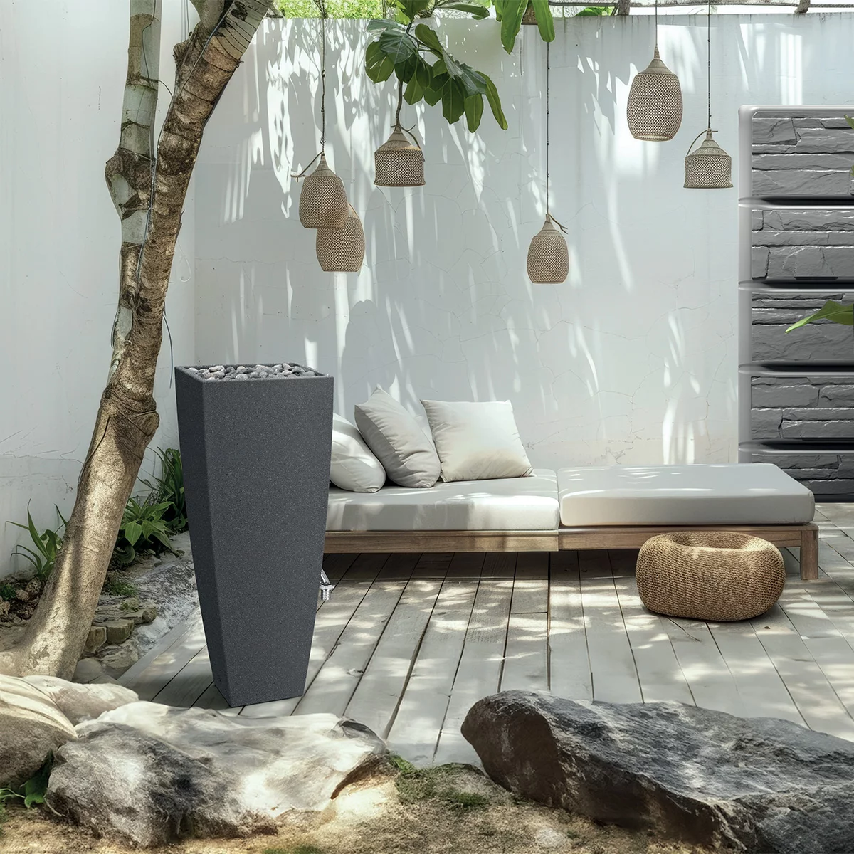 Zbiornik na deszczówkę RMO200 Modena to eleganckie rozwiązanie retencyjne, które nawiązuje stylistyką do klasycznego wzornictwa śródziemnomorskiego. Dzięki pojemności 200 litrów, model ten stanowi idealną propozycję dla właścicieli mniejszych posesji, tarasów oraz ogrodów, którzy poszukują funkcjonalnego magazynu wody opadowej o wysokich walorach dekoracyjnych. Jego smukła, zwężająca się ku dołowi bryła o subtelnie fakturowanej powierzchni sprawia, że zbiornik doskonale wpisuje się w otoczenie klasycznych elewacji, ogrodów w stylu włoskim oraz stref wejściowych do budynków. Jest to doskonały wybór dla osób, które pragną połączyć proekologiczne zarządzanie wodą z dbałością o estetykę otoczenia, zamieniając standardowy element instalacyjny w stylową ozdobę małej architektury ogrodowej.