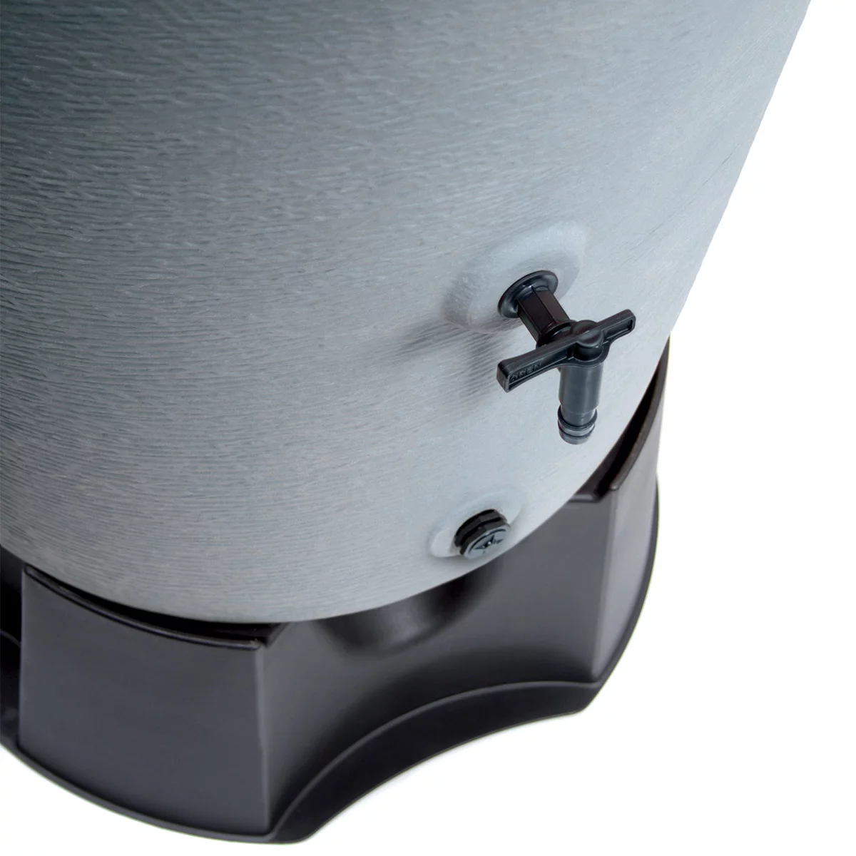 Pod kątem technologicznym model ICAN360 reprezentuje najwyższy standard wykonania dekoracyjnych zbiorników naziemnych. Wykonanie z wysokogatunkowego polietylenu metodą formowania rotacyjnego gwarantuje monolityczną, bezszwową konstrukcję o wyjątkowej sztywności strukturalnej i 100% szczelności. Materiał ten charakteryzuje się pełną odpornością na promieniowanie UV oraz skrajne wahania temperatur, co zapobiega blaknięciu koloru i kruszeniu polimeru nawet przy wieloletniej ekspozycji na trudne warunki atmosferyczne. Zbiornik został wyposażony w fabrycznie przygotowane otwory z gwintem 3/4" do montażu kranika na wysokości umożliwiającej komfortowy pobór wody, a górna pokrywa zbiornika służy jednocześnie jako zintegrowana misa na rośliny. Pozwala to na nasadzenie kwiatów ozdobnych bezpośrednio na szczycie urządzenia, co dodatkowo podnosi jego walory wizualne i maskuje techniczne przyłącza rynnowe.
