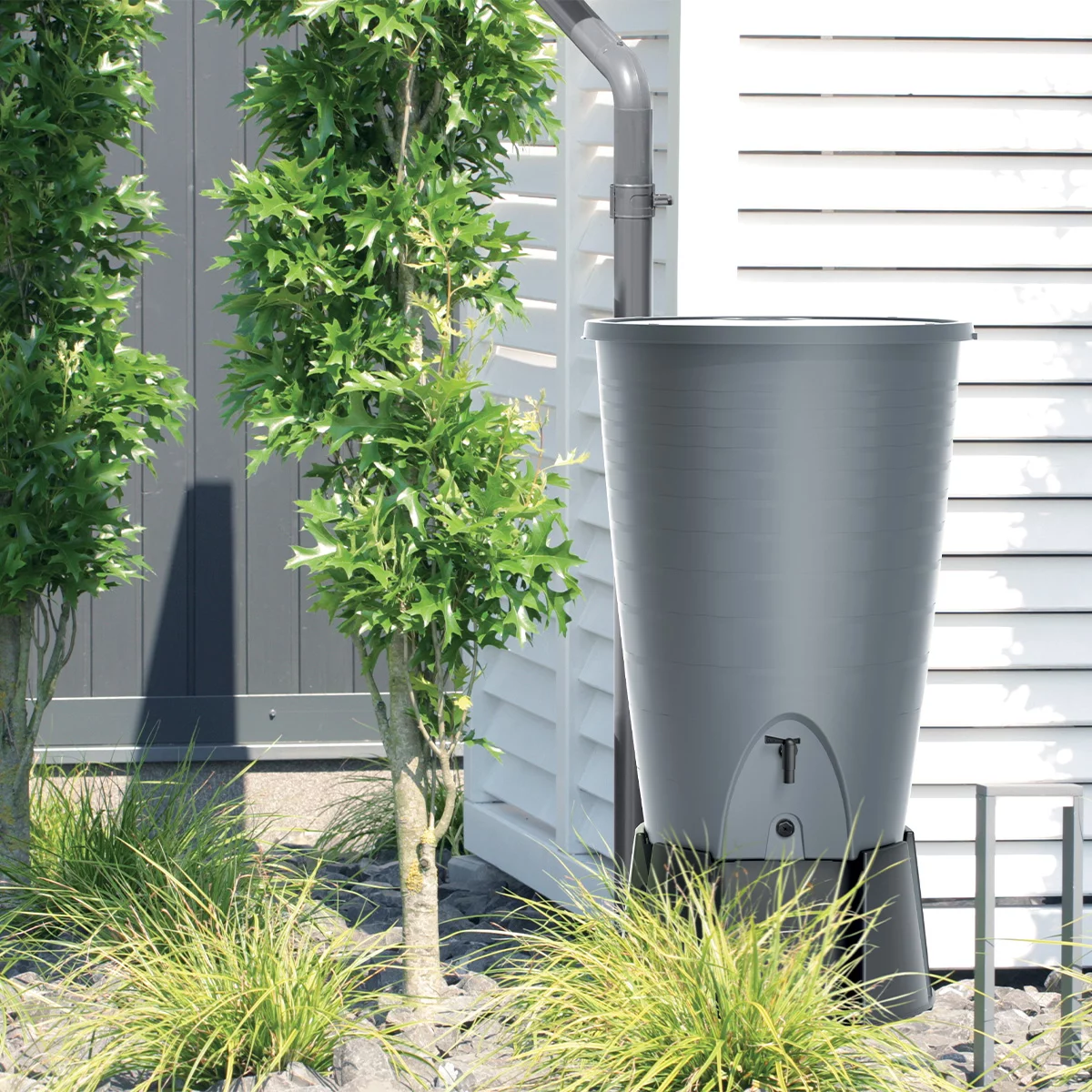 Zbiornik na deszczówkę IDPE260S Peruno Set to profesjonalne, systemowe rozwiązanie retencyjne o pojemności 260 litrów, zaprojektowane z myślą o użytkownikach poszukujących gotowego do pracy i wysoce funkcjonalnego zestawu. Model ten wyróżnia się nowoczesną, smukłą formą o charakterystycznym, stożkowym profilu, który nadaje mu dynamicznego i współczesnego wyglądu. Dzięki przemyślanej konstrukcji, Peruno Set 260 doskonale wpisuje się w otoczenie nowoczesnych domów jednorodzinnych, pasując do elewacji wykończonych tynkiem, drewnem czy betonem architektonicznym. Jest to idealny wybór dla inwestorów, którzy cenią sobie kompletność rozwiązania – zestaw zawiera kluczowe akcesoria, co eliminuje konieczność osobnego dobierania komponentów i gwarantuje natychmiastowe rozpoczęcie ekologicznego gromadzenia wody opadowej.