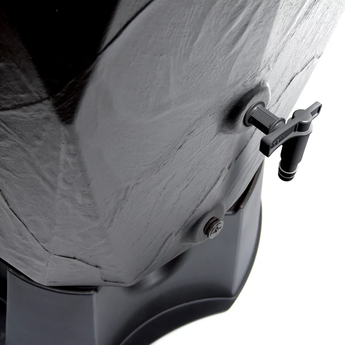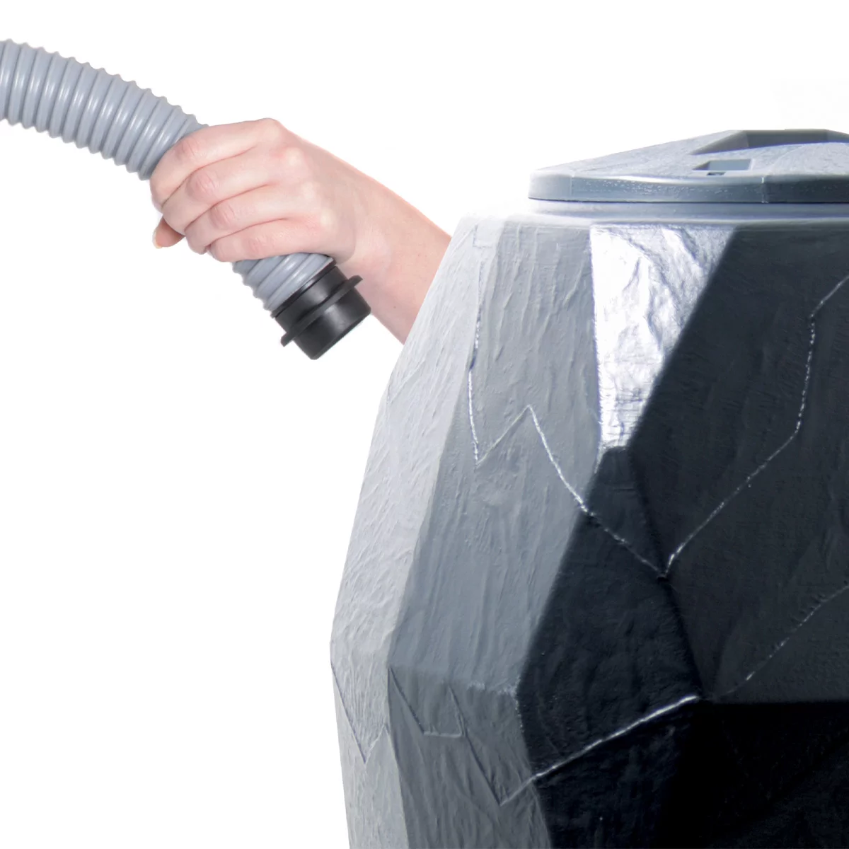 Pod kątem technologicznym model ION310 reprezentuje najwyższy standard wykonania dekoracyjnych zbiorników naziemnych. Wykonanie z wysokogatunkowego polietylenu metodą formowania rotacyjnego gwarantuje monolityczną, bezszwową konstrukcję o wyjątkowej odporności na pęknięcia i uszkodzenia mechaniczne. Materiał ten jest w pełni uodporniony na działanie szkodliwych czynników atmosferycznych, w tym skrajnych temperatur oraz promieniowania UV, co zapewnia trwałość koloru i struktury przez wiele lat eksploatacji. Zbiornik został wyposażony w dwa fabrycznie przygotowane otwory z gwintem 3/4" – górny, dedykowany do montażu estetycznego kranika, oraz dolny, służący do całkowitego opróżnienia zbiornika przed zimą lub podpięcia węża ogrodowego. Specjalnie wzmocnione ścianki zapobiegają odkształceniom pod wpływem naporu wody, a szeroka górna pokrywa umożliwia łatwy dostęp do wnętrza w celu okresowego czyszczenia.